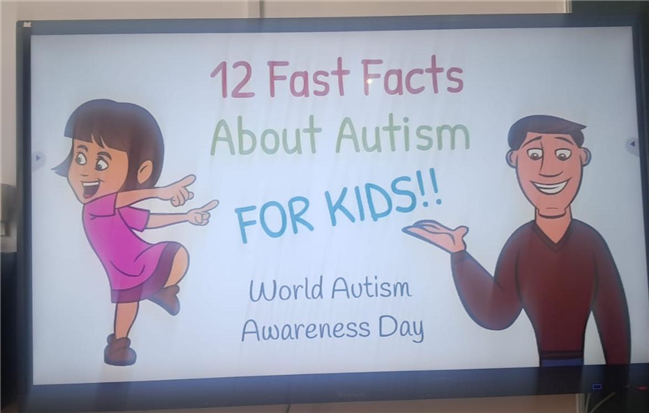 On the occasion of World Autism Awareness Day, a video was shown in the Grade 4 to raise awareness about autism and to promote the rights and inclusion of individuals with autism. The students watched the video with great interest, expressed curiosity, and enthusiastically shared their thoughts and views on the topic.